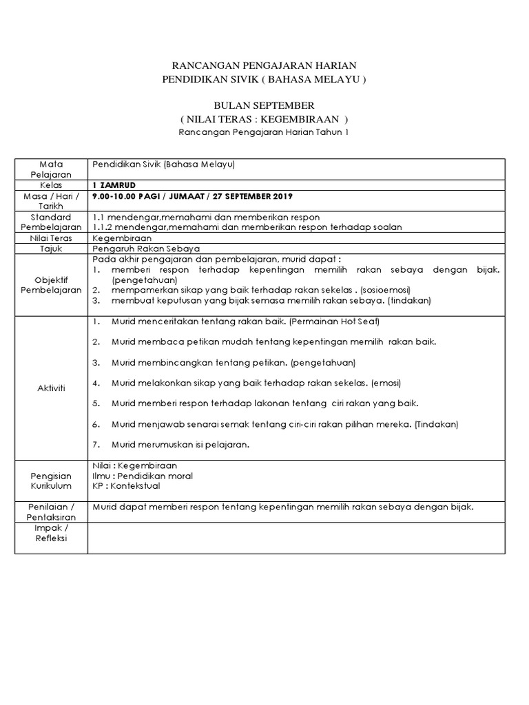 Rancangan Pengajaran Harian Pendidikan Sivik Bahasa Melayu Pdf