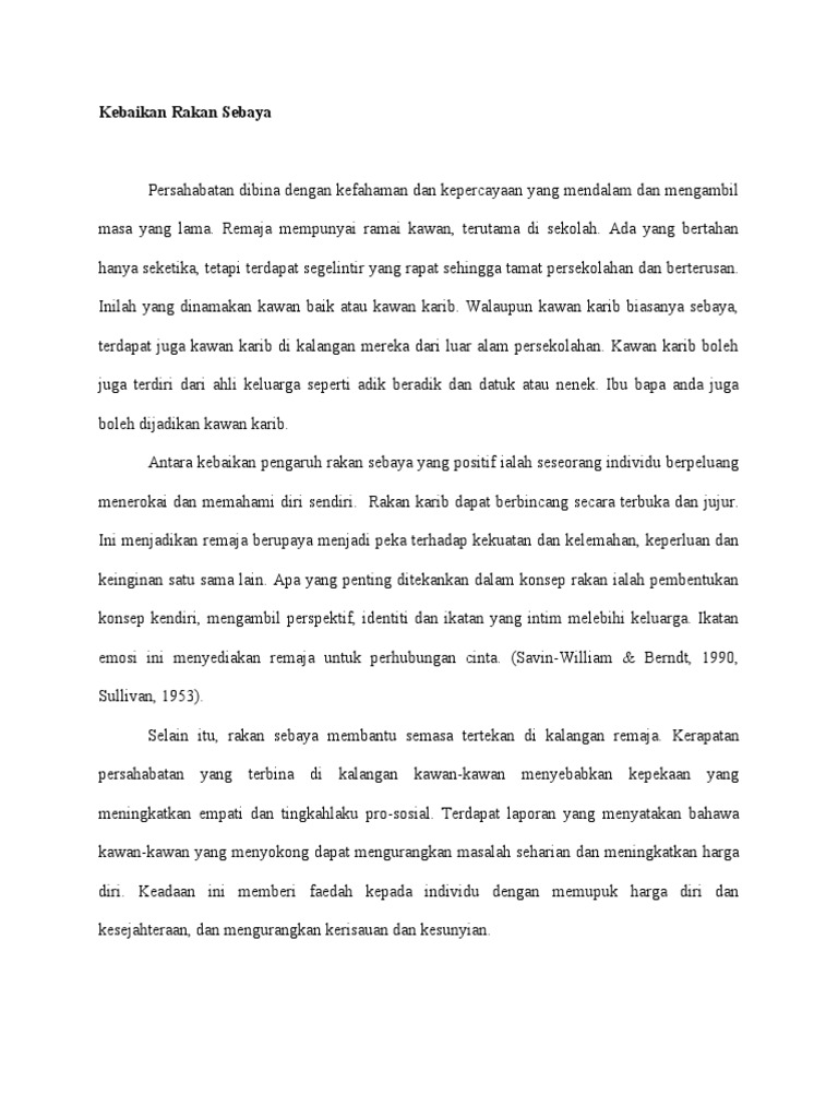 Kajian tentang pengaruh rakan sebaya. Para pelajar yang masih terlalu muda dikatakan berumur setahun jagung dan berdarah setampuk pinang sebahagian besarnya masih belum boleh berfikir dengan matang. 443 Objetif kajian 3. Terdapat dua jenis pengaruh rakan sebaya dalam kehidupan seseorang remaja iaitu pengaruh positif dan pengaruh negatif.